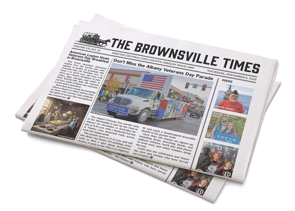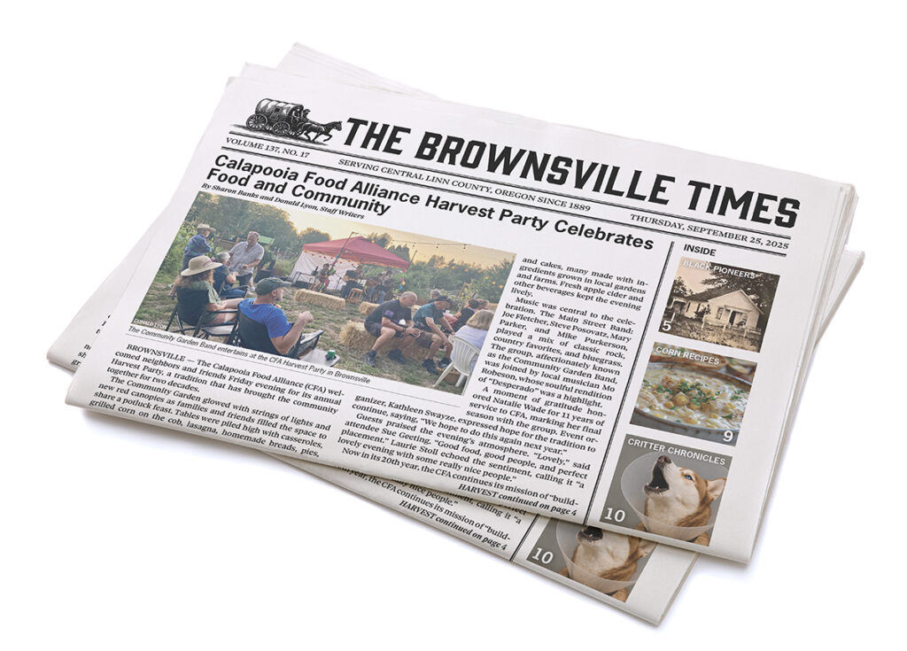 The Brownsville Times has launched a community-wide subscription drive with a goal of 800 print subscribers and 200 single-copy sales. Volunteers are visiting homes across Brownsville, Tangent, Crawfordsville, Shedd, and Halsey to thank current readers and encourage new ones to join.